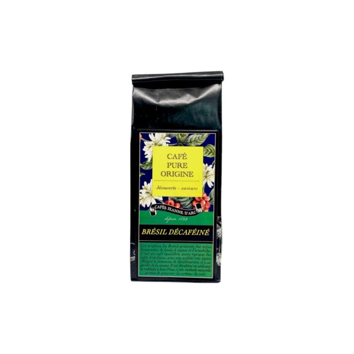 cafés brésiliens, avec une acidité très légère. Malgré le processus de décaféination, il a su garder de la saveur. Il est décaféiné en utilisant la méthode à base d’eau. Cette méthode naturelle permet de préserver les arômes du café.