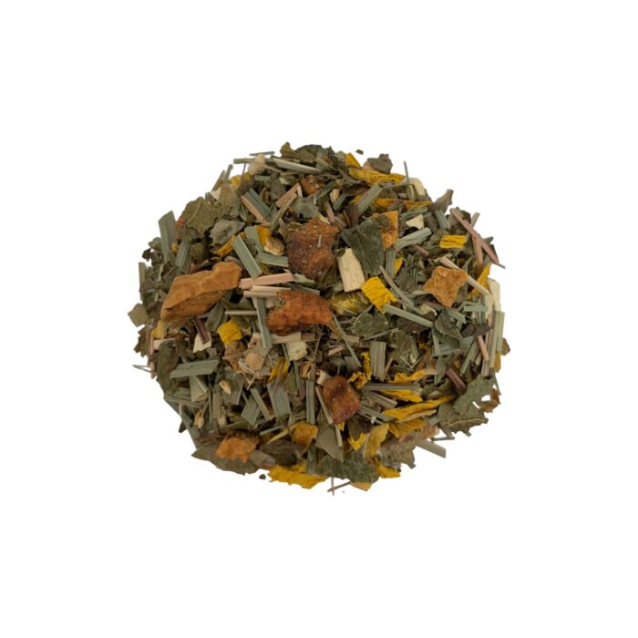 Infusion Zen qui associe les vertus anti-oxydantes et fortifiantes des feuilles de bambou, les propriétés bienfaisantes de la citronnelle, la sensation de fraîcheur apportée par le citron et l’orange, la saveur acidulée et juteuse de la pomme et une fine note exotique de fruits de la passion.