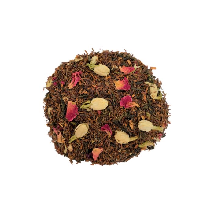 Ce mélange allie la douceur et la rondeur du rooibos à un cocktail de saveurs à la fois fruitées et fleuries aux notes de litchi, de rose et de pamplemousse.