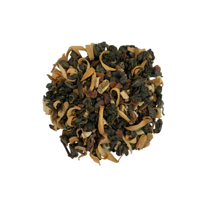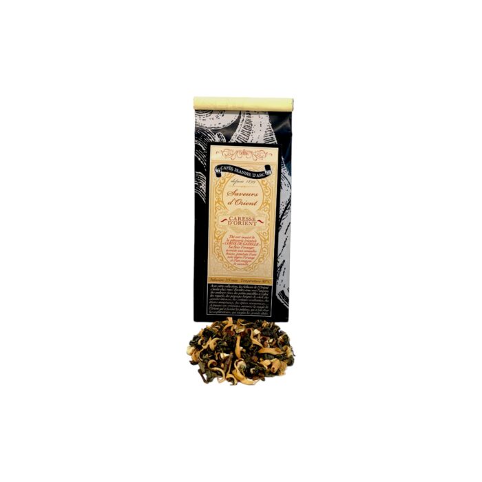 Thé vert inspiré de la pâtisserie orientale « Corne de Gazelle ». L’association gourmande et parfumée de la fleur d’oranger et des amandes douces se prolonge d’une légère note de citron et d’un soupçon de cannelle.