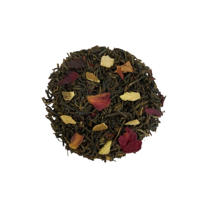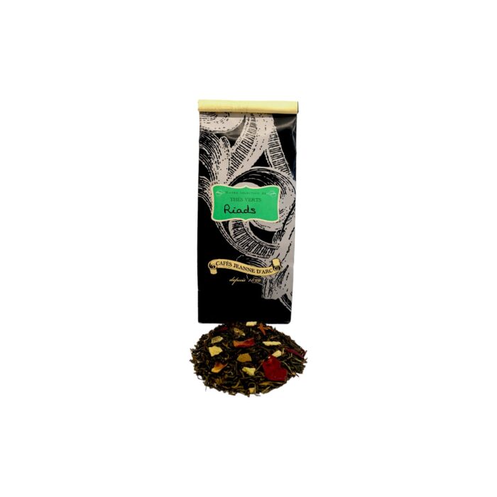 Subtil assemblage d’un thé vert aux arômes cannelle, cardamome, citron doux et pamplemousse. Le piment, les écorces d’orange et les pétales de fleurs complètent dans une tasse subtile et équilibrée l’évocation des cours et des jardins secrets marocains.