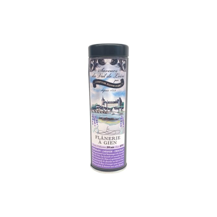 Ce thé gourmand rend hommage à la lavande Bleu de Gien, développée tout récemment près de Gien. Cette nouvelle variété de lavande officinale s’illustre par sa floraison estivale et sa couleur caractéristique des épis, très lumineuse, intermédiaire entre le bleu et le violet vif.