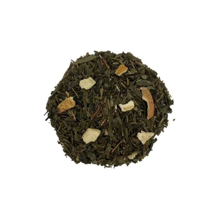 Thé vert aromatisé à l’huile essentielle d’orange sanguine. Une tasse fraîche et végétale aux notes fruitées agréablement acidulées.