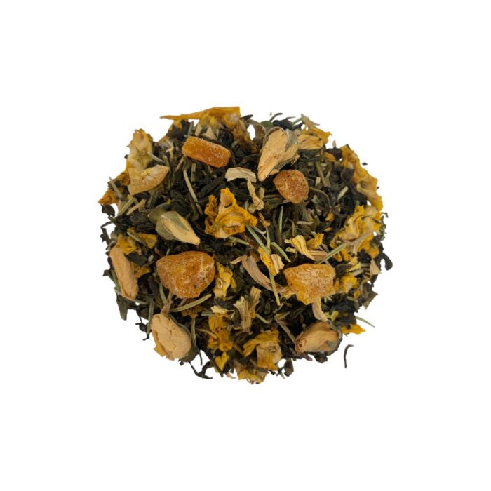 Mélange raffiné et vivifiant qui associe le thé vert aux fruits jaunes et une note subtile de romarin pour vous apporter le plein d’énergie et de fraîcheur.